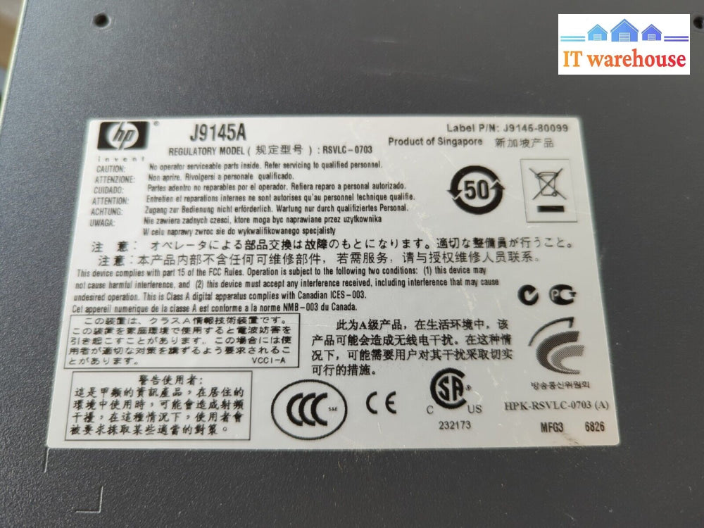 HP ProCurve J9145A 2910al-24G 24 Port Gigabit Switch With 8121-0879 Cable -